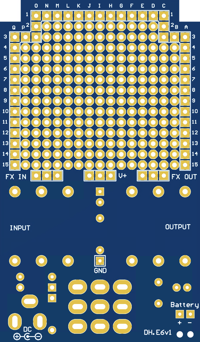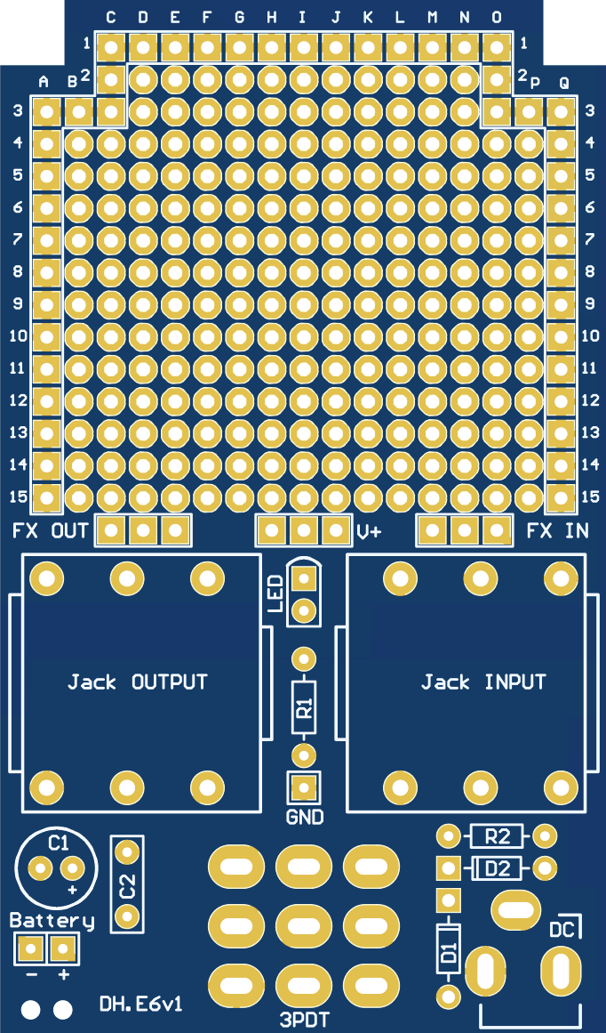 This board simplifies building your DIY guitar pedal in a 1590B enclosure. Just build your effect circuit on the pre-perforated area of the PCB.Steps