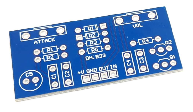 The DHB33 PCB can be used to build either the Boss Tone Fuzz or the Satisfaction Fuzz.