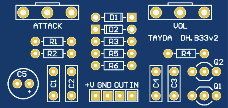 The DHB33 PCB can be used to build either the Boss Tone Fuzz or the Satisfaction Fuzz.